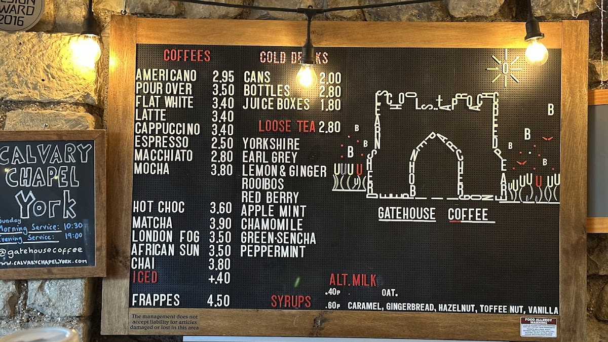 Gatehouse Coffee, located at Walmgate Bar in the heart of York, is a quaint gem that offers more than just your typical café experience. The menu at Gatehouse Coffee is a reflection of its commitment to quality, with an emphasis on freshly brewed coffee, artisan teas, and delicious homemade treats.